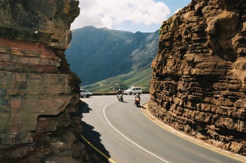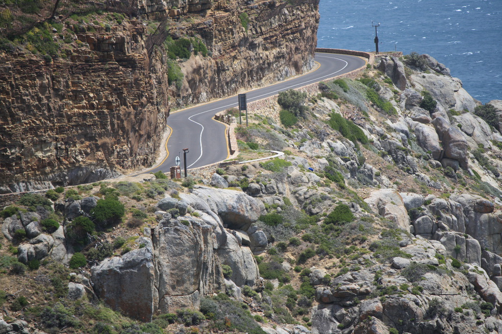 La carretera que nos ocupa hoy forma parte del selecto grupo de las rutas costeras más bellas del mundo y, además, supone nuestra primera incursión en el continente negro. La Chapman’s Peak Drive, conocida popularmente como Chappies, abraza a lo largo de 9 kilómetros la cara oeste del monte Chapman en su abrupto descenso hacia el océano Atlántico. Fue construida bajo dominio británico entre 1915 y 1922 y en su momento supuso un hito de la ingeniería de carreteras, dado lo escarpado del terreno. La obra se inició por orden del primer gobernador de la provincia de El Cabo, Sir Nicolas Frederick de Waal, quien quería comunicar Ciudad del Cabo con los suburbios del sur.