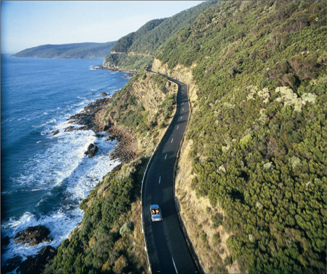 La carretera discurre paralela a la costa occidental de Victoria y durante 243 kilómetros disfrutaremos de la belleza del océano y de un buen número de atractivos turísticos. Este tramo del litoral es conocido como Shipwreck Coast (Costa de los Naufragios). Durante el siglo XIX, el estrecho de Bass, que separa el continente australiano de la isla de Tasmania, era el principal canal de navegación para los barcos de presos que llevaban a los inmigrantes a las colonias de Victoria y Nueva Gales del Sur. Pero, para desgracia de muchos de ellos, esta costa abrupta e inhóspita, de densas brumas y fuertes marejadas, se cobró un gran número de navíos. El más famoso de ellos fue el Loch Ard, que en 1878 se estrelló de madrugada contra un arrecife a causa de la niebla. Sólo hubo dos supervivientes, que lograron llegar a la costa en la zona que hoy se conoce como la garganta de Loch Ard. Existen aproximadamente 638 naufragios documentados a lo largo de la costa de Victoria, aunque sólo alrededor de 240 han sido descubiertos.