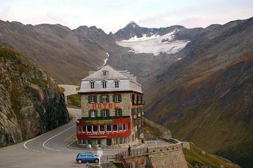 El recorrido propuesto comienza en el valle de Goms, en la pequeña localidad de Ulrichen. Iniciamos la ascensión al Paso de Furka (2.431m) por el oeste y, tras pasar el cruce de Gletsch, acometemos una sucesión de siete curvas de 180 grados (en herradura). Es una subida espectacular con un desnivel de 1.400 metros y porcentajes que llegan al 13% en algunos tramos. A 3 kilómetros de la cima se encuentra el mítico hotel Belvéderè, donde no podemos dejar de visitar el glaciar donde nace el río Ródano. Para ello habrá que recorrer una gruta excavada manualmente en el hielo; previo pago, eso sí.